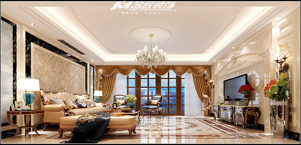 欧式风格室内装修效果图-龙光玖珑湖三居136平米