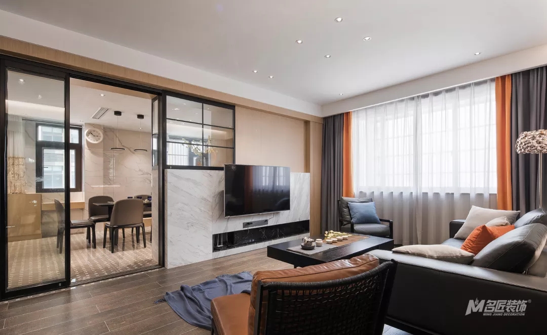 市面上电视背景墙千变万化,各有各的风韵,而在为业主设计靓家时,我们的设计师巧妙的利用半高大理石背景墙进行隔断改造,还为空间增加了收纳储存的地方,可谓兼具着美观与实用,接下来就带领大家去看看吧。